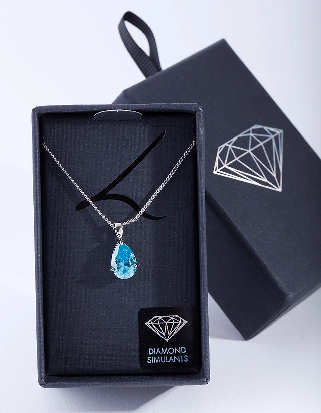 Silver Diamond Simulants Jewel Teardrop Stone Necklace & Earrings Set