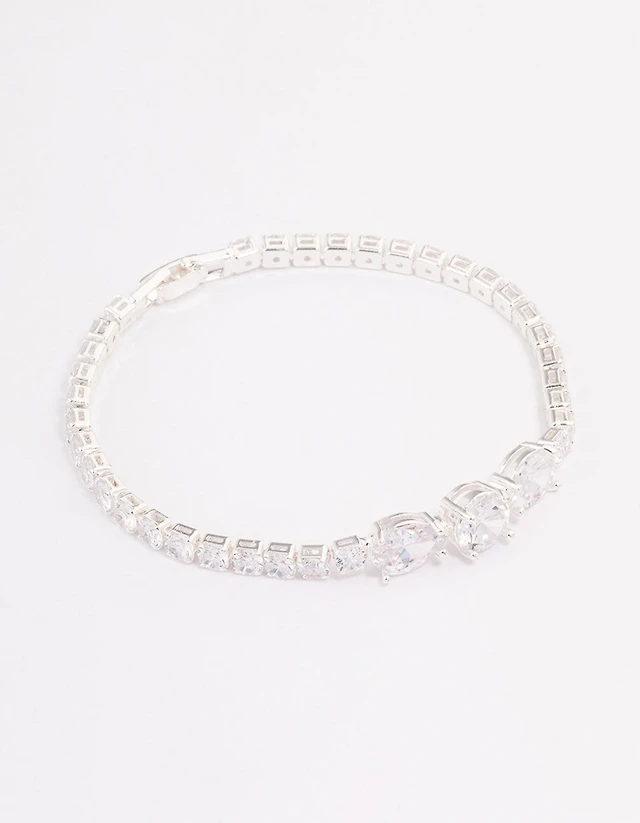 Silver Multi Cubic Zirconia Stone Tennis Bracelet