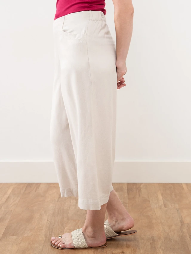 Tonia Linen-Blend Stone Wide Crop Pant