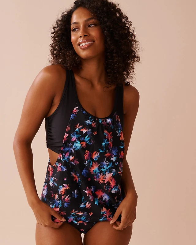 TROPICAL RETREAT D Cup Cross-over Tankini Top