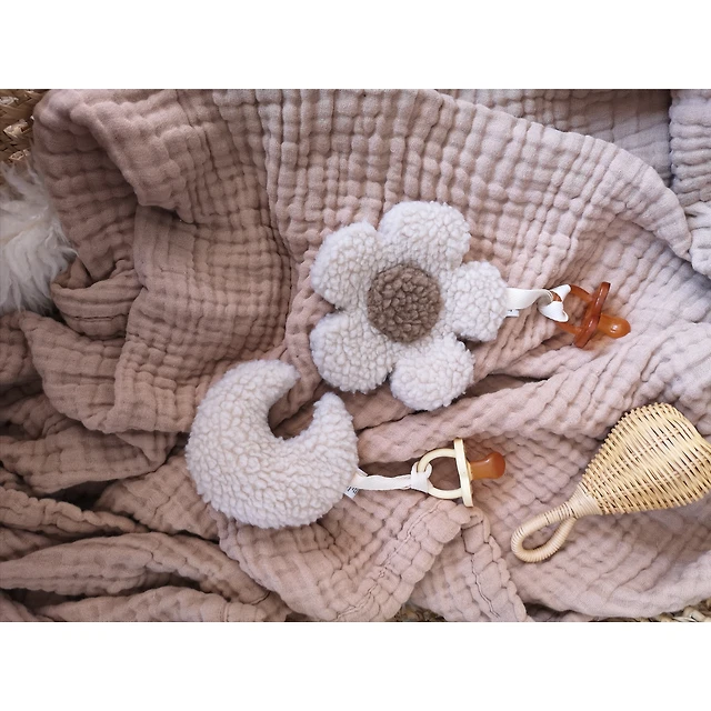 Daisy and Moon Pacifier Clips, Set of 2 -Cream and Beige