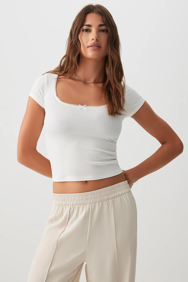 Ardene Contrast V-Neck Baby T-Shirt in White | Size | Cotton/Elastane