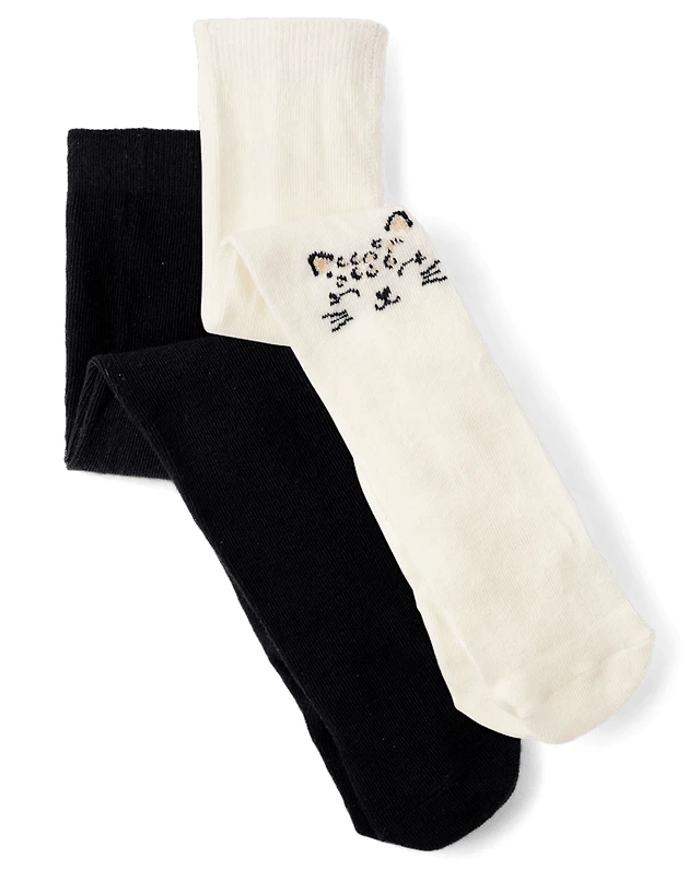 Girls Printed & Solid Soft Leggings (2 Pack)