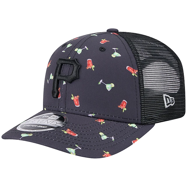 Men's New Era Navy Pittsburgh Pirates Adventure Drinks Pattern 9SEVENTY Stretch-Snap Hat