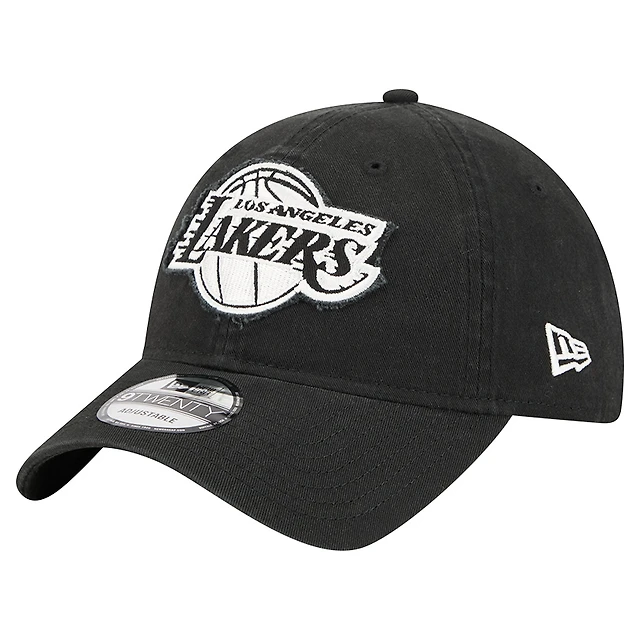 Men's New Era Black Los Angeles Lakers Stamp Fabric Applique 9TWENTY Adjustable Hat