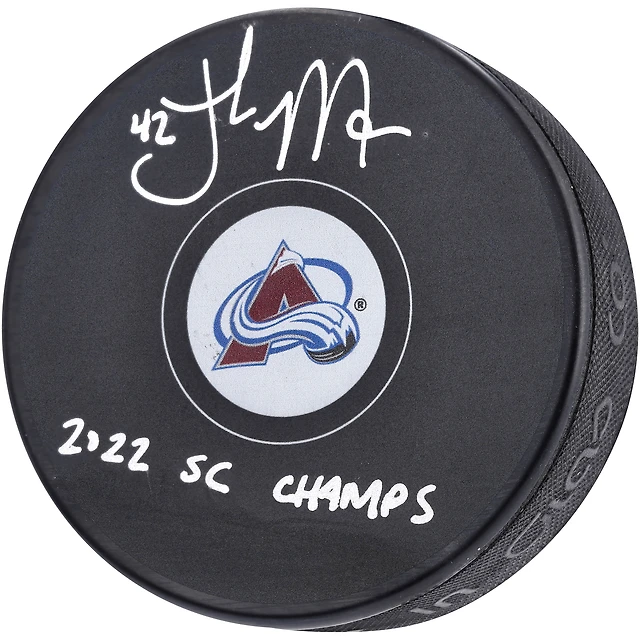 Josh Manson Colorado Avalanche Autographed Hockey Puck with "2022 SC Champs" Inscription