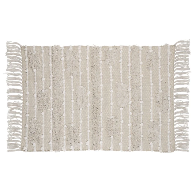Thin Stripe Pattern with Fringe Rug - Beige and White