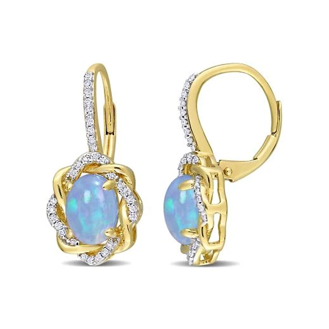 Previously Owned - Pear-Shaped Swiss Blue Topaz and 0.18 CT. T.W. Diamond Scallop Frame Drop Earrings in 10K Gold