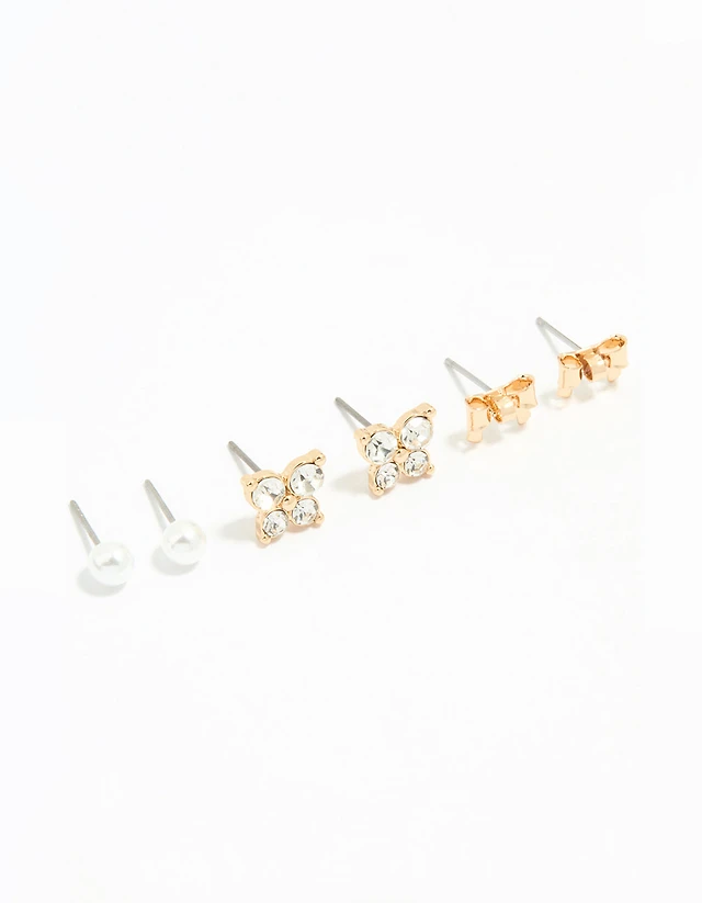 Gold Cubic Zirconia Classic Stud Earring 6-Pack
