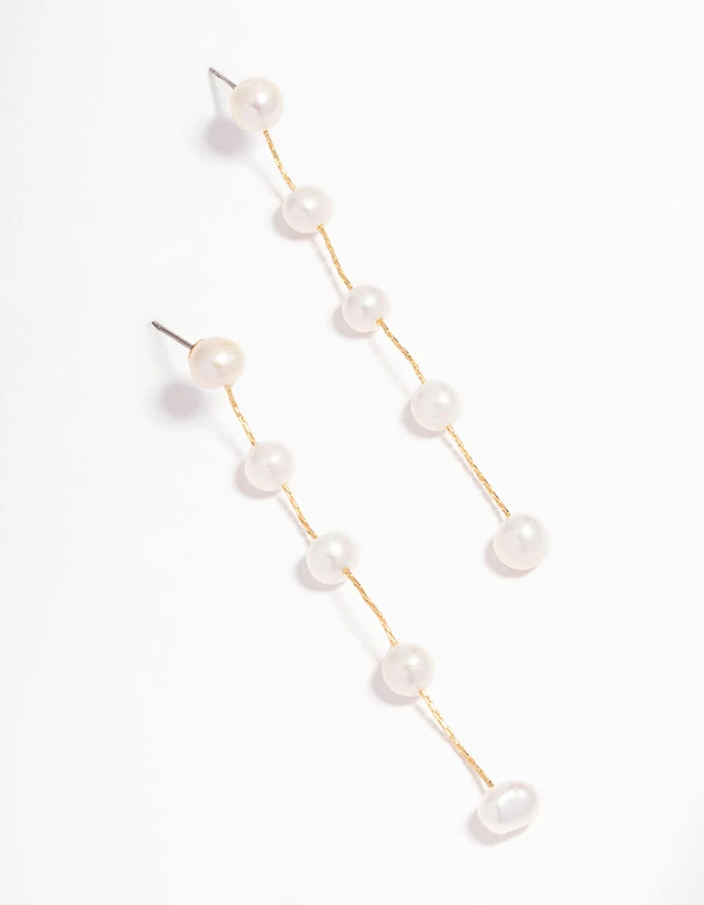 Marquise Onyx and Freshwater Cultured Pearl Wire Drop Earrings in Sterling Silver