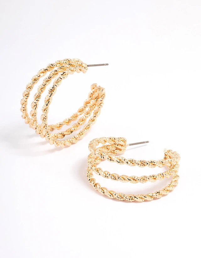 Double Bypass Hoop Earrings in Sterling Silver and 14K Gold