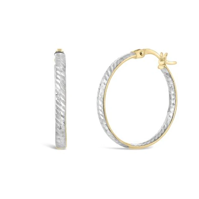 10K Yellow and White Gold Diamond Cut Twisted Hoops