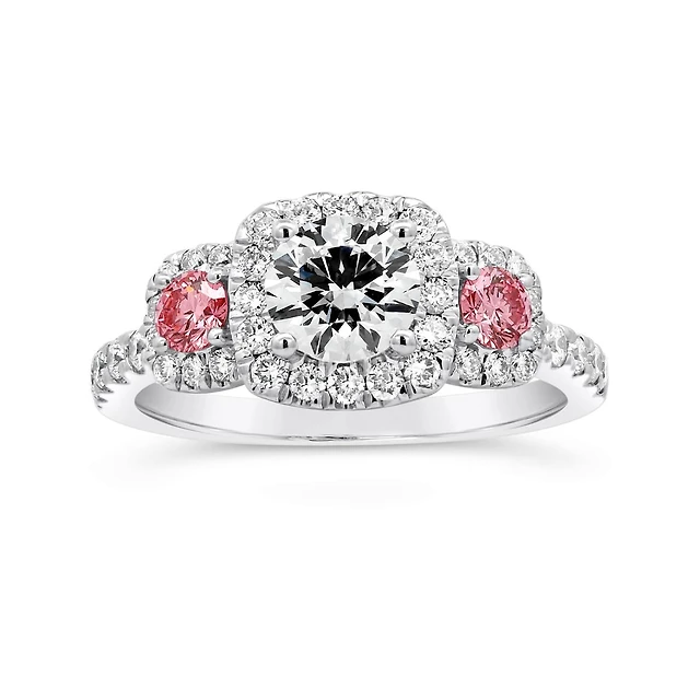 Certified Cushion-Cut Pink Tourmaline and 1.45 CT. T.W. Diamond Bridal Set 14K White Gold