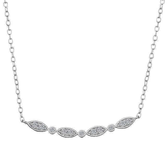 Diamond Accent Curved Bar Necklace in Sterling Silver