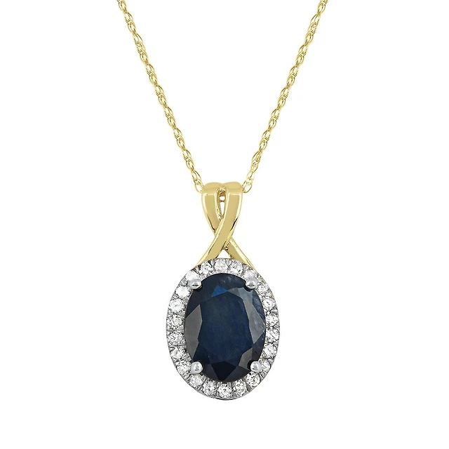 Pear-Shaped Blue Sapphire and 0.08 CT. T.W. Diamond Frame Pendant in 10K Gold