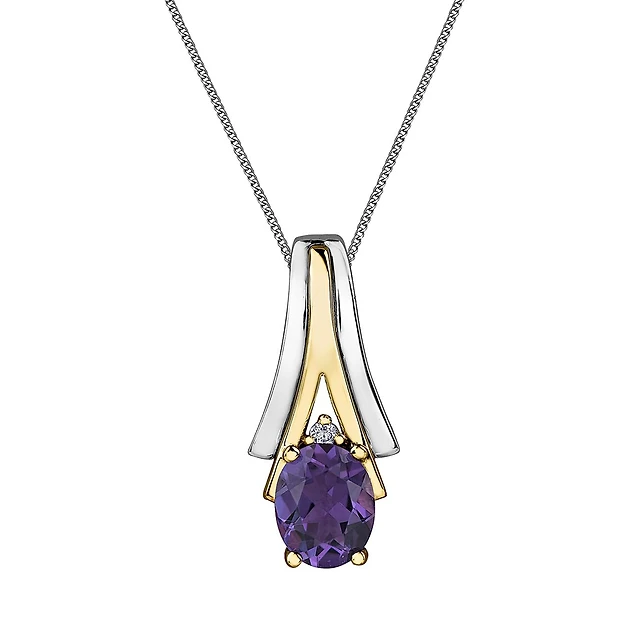 Amethyst and 0.16 CT. T.W. Diamond Double Heart Pendant in Sterling Silver