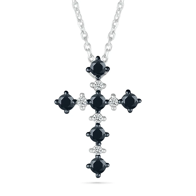 Silverplated Black Stone Cross Pendant Chain Necklace