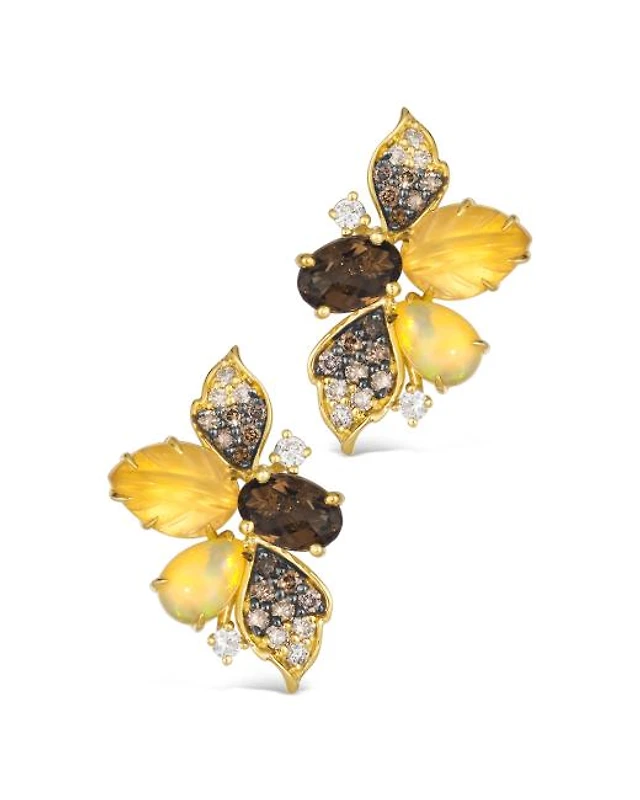 Julianna B 14K Yellow Gold Citrine and Diamond Accent Flower Stud Earrings