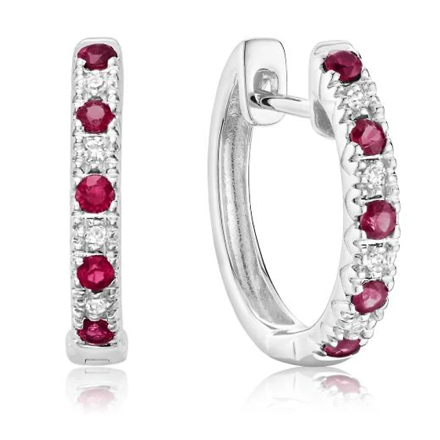 8.0mm Cushion-Cut Lab-Created Ruby and Diamond Accent Drop Earrings in 10K White Gold