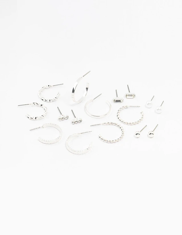 Silver Chunky & Braided Hoop Earrings 3-Pack