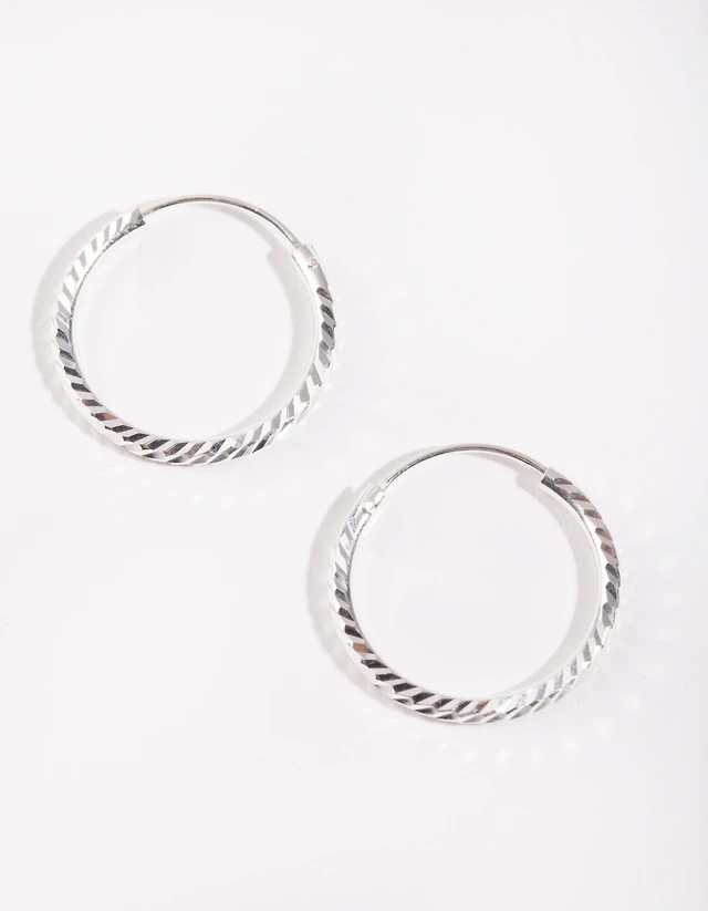 13mm Diamond-Cut Hoop Earrings in 14K White Gold
