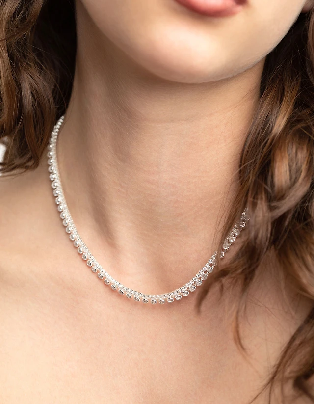 Silver Cubic Zirconia Graduating Diamante Tennis Necklace