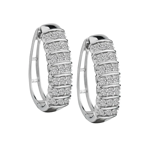 10K White Gold 0.50CTW Diamond Hoop Earrings