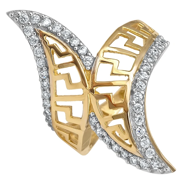 Emmy London 0.70 CT. T.W. Certified Diamond Double Frame Leaf-Sides Engagement Ring 18K White Gold (F/VS2)