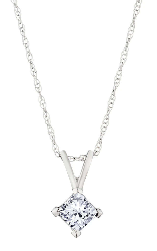0.10 CT. Certified Canadian Diamond Square-Set Solitaire Pendant in 14K White Gold - 17"(I/I2)
