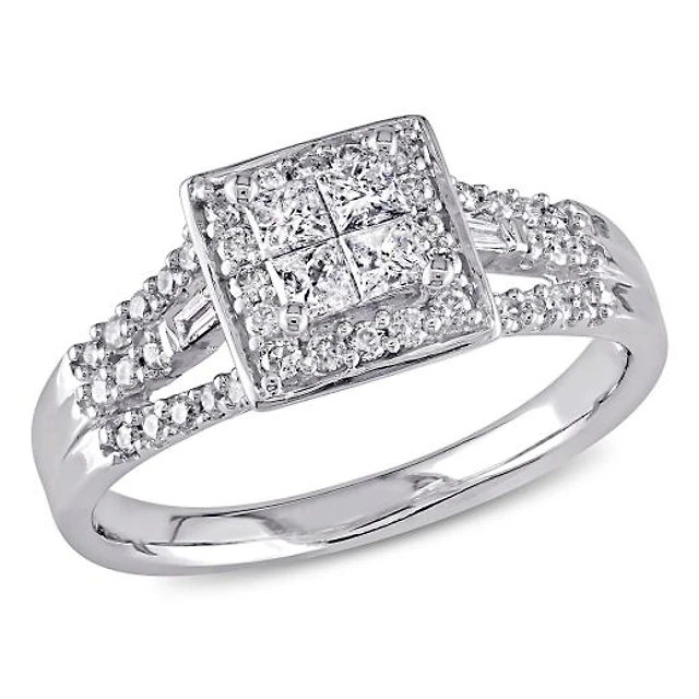 1.00 CT. T.W. Princess-Cut Diamond Miracle Past Present Future® Engagement Ring 10K White Gold (I/I2)