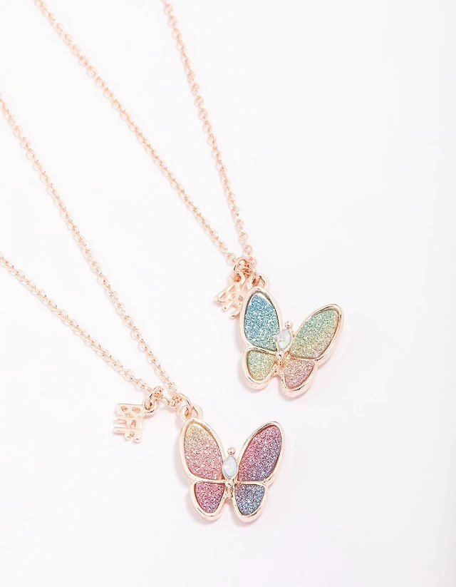 Kids Rose Gold Glitter Butterfly Pendant Necklace Pack