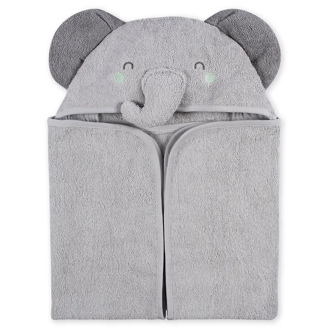 Koala Baby - 2-Pack Baby Hooded Towel & Washcloth Set - White & Grey Elephant