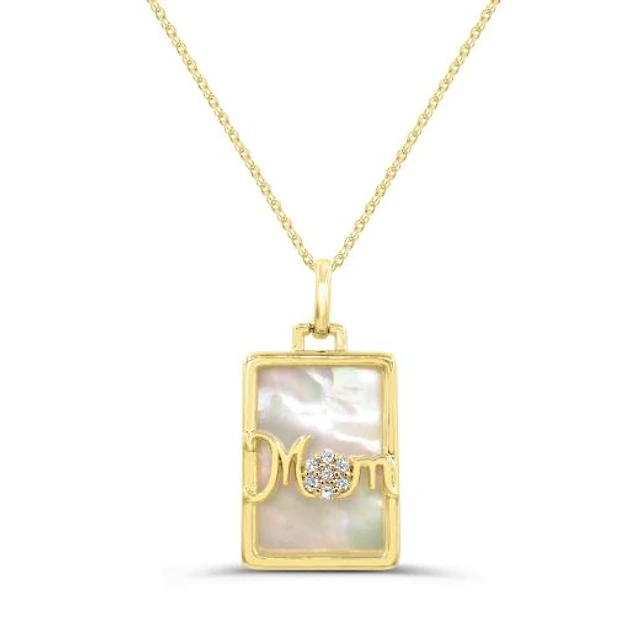 10K Yellow Gold Mother of Pearl & Created White Sapphire Pendant
