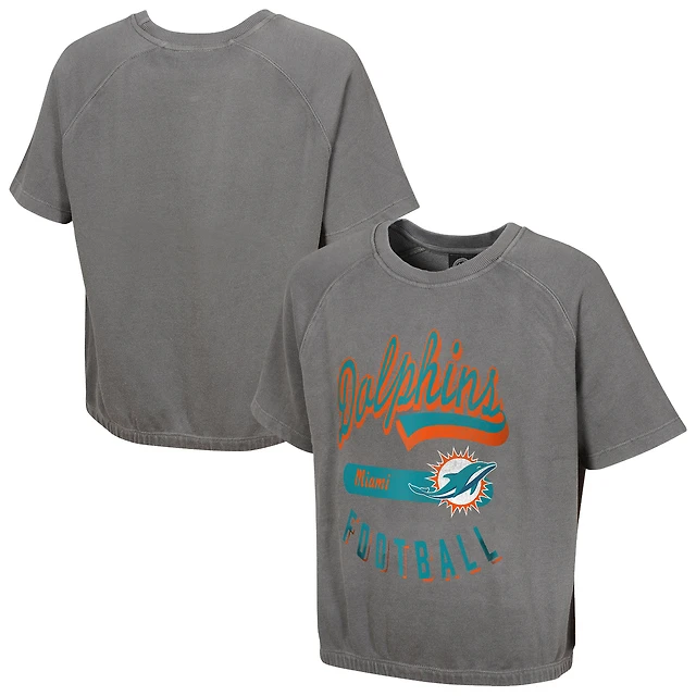 Women's Starter Heather Gray Miami Dolphins Show Up Cropped Fleece Pullover Sweatshirt