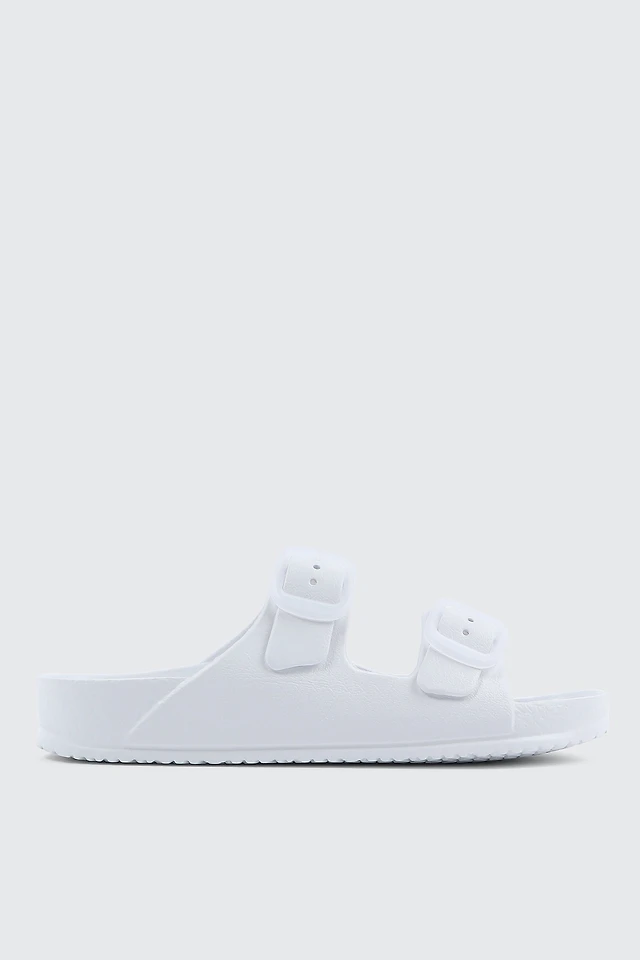 Ardene Flat Sandals with Chunky Buckle in White | Size | Faux Leather | Eco-Conscious