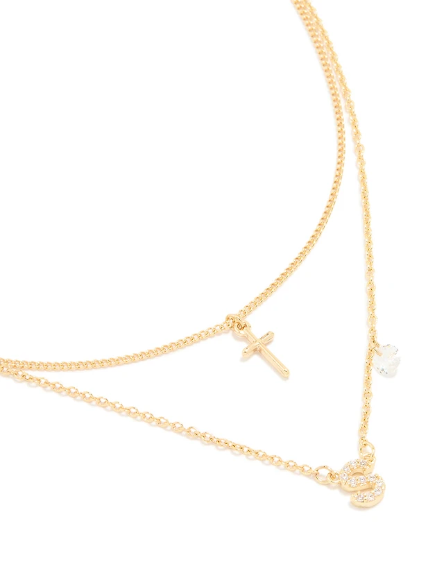 Antique Silver Butterfly Cross Stone Layered Necklace