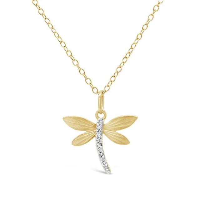 Sterling Silver 0.23CTW Black & White Diamond Dragonfly Pendant