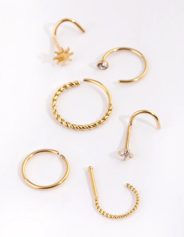 Gold Plated Surgical Steel Diamante Twist Nose Stud 6-Pack