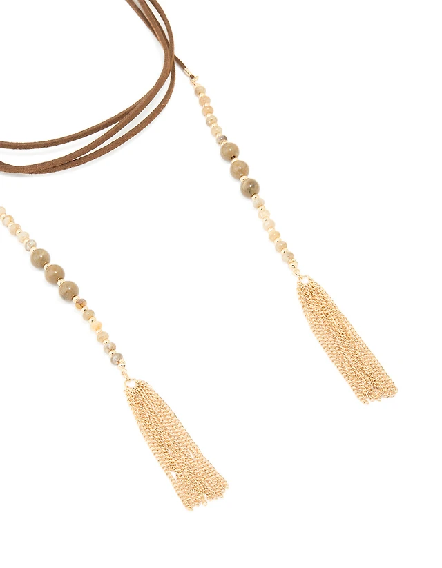 Gold Open Pendant Brown Cord Layered Long Necklace