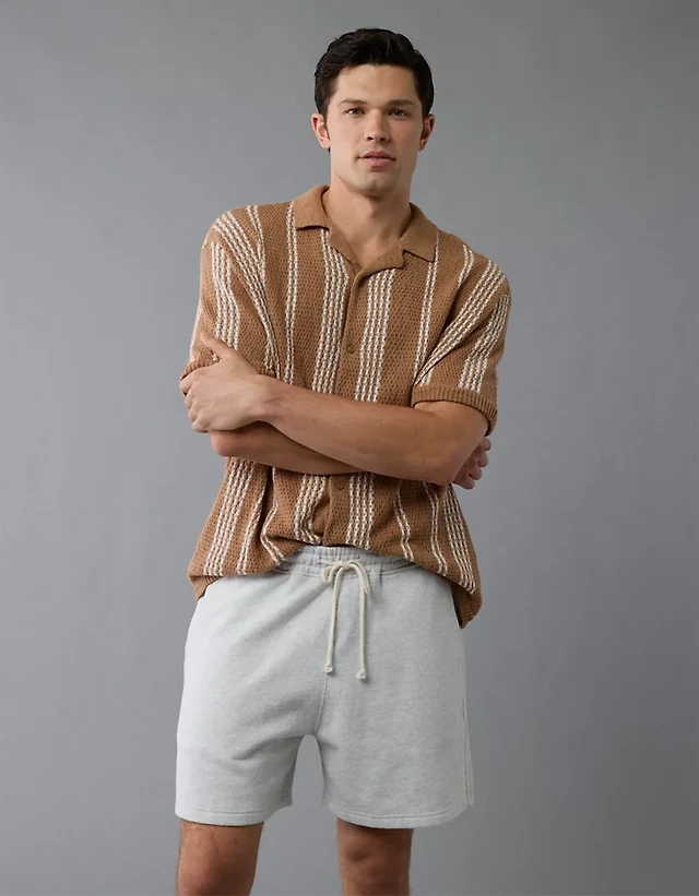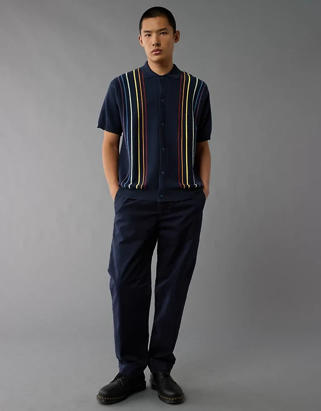 AE Weekend Striped Button-Up Sweater Polo Shirt