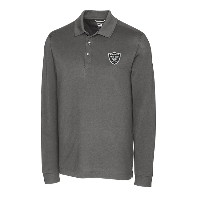 Men's Cutter & Buck Gray Las Vegas Raiders Advantage Long Sleeve Polo