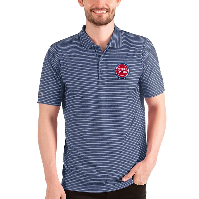 Men's Antigua Heather Navy Detroit Pistons Layout Polo