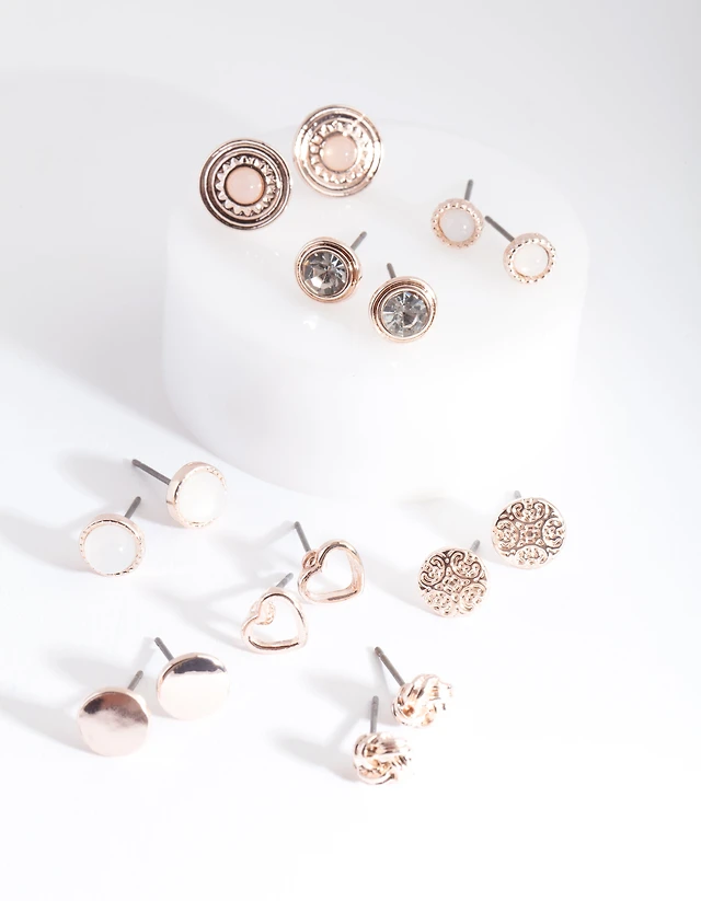 Rose Gold Big Stud Ear 8-Pack