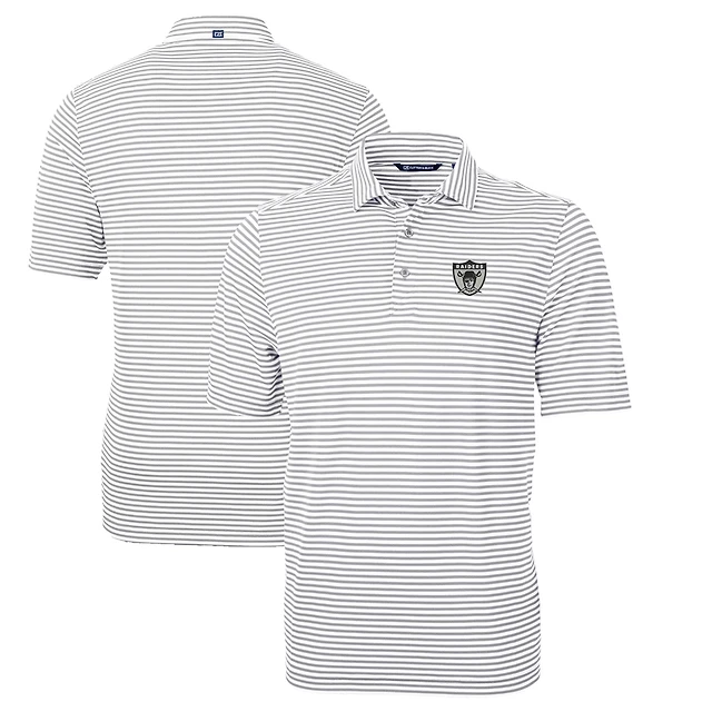 Men's Cutter & Buck Gray Las Vegas Raiders Throwback Logo Virtue Eco Pique Stripe Recycled Big Tall Polo