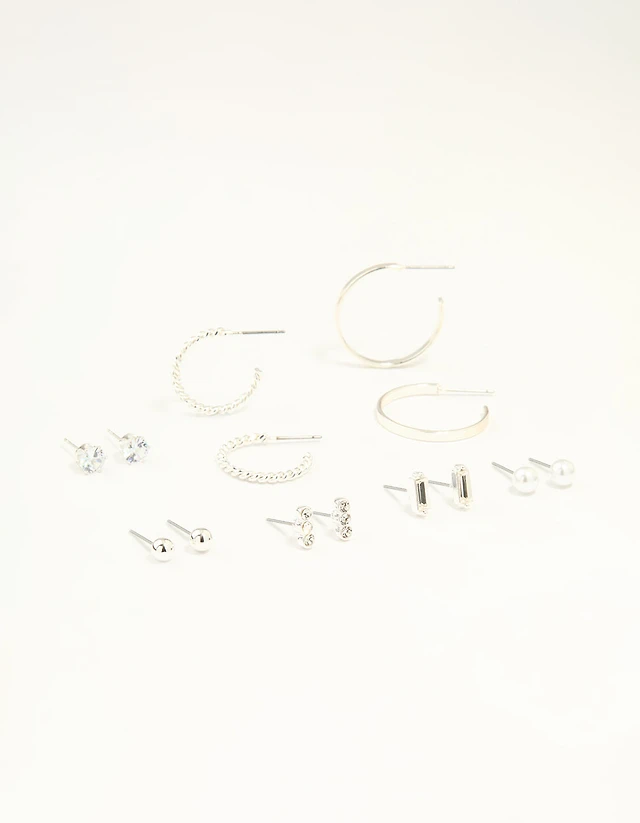 Gold Plated Cubic Zirconia Chain & Huggie Earrings 4-Pack