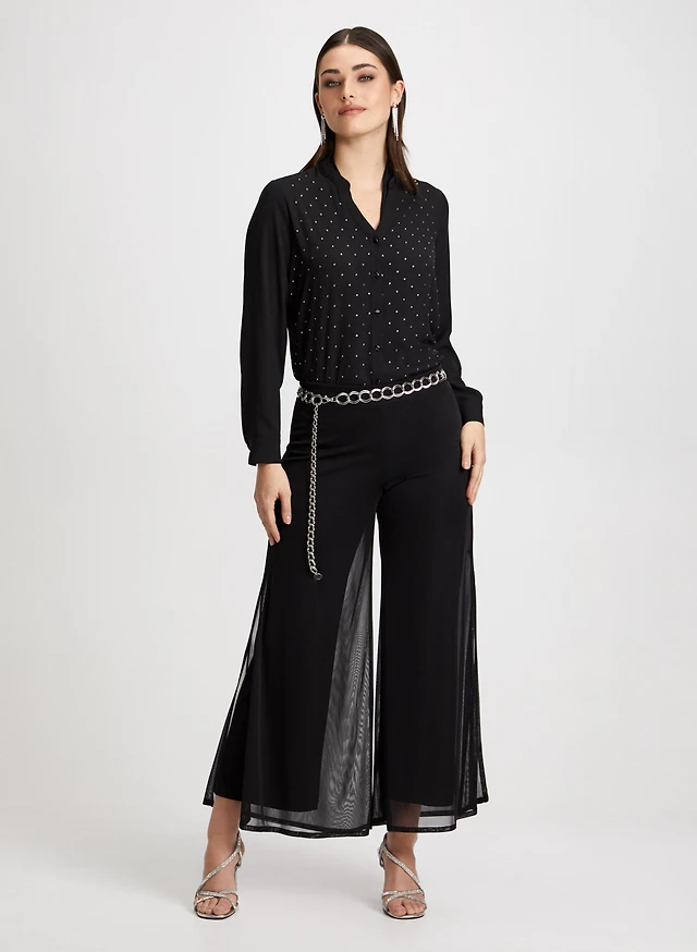 Sleeveless Tie-Neck Top & Slim Leg Pants