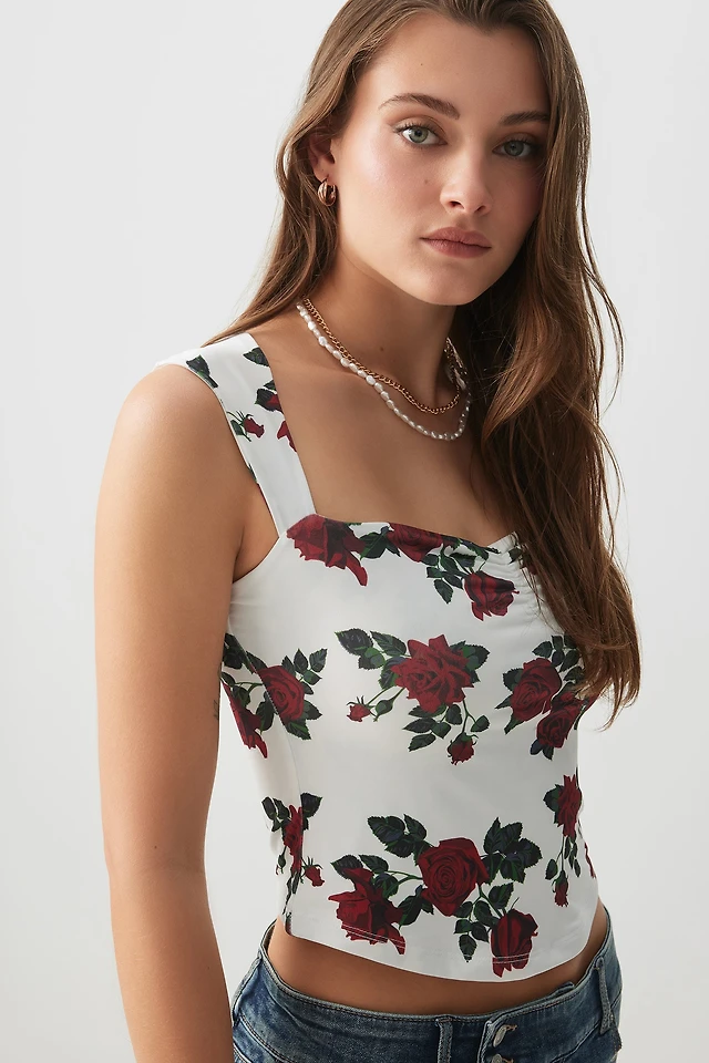 Tie-Front Floral Blouse & Embellished Denim Capris