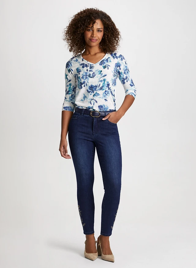 Floral Tied Hem Top & Slim Leg Bengaline Pants