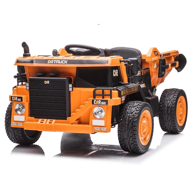KidsVip 12V Construction Dump Truck w/ RC- Orange - English Edition
