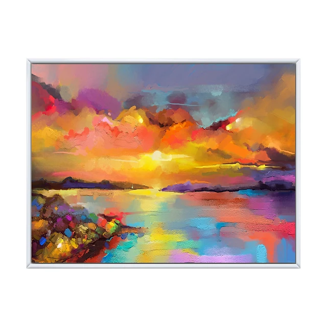 Colourful Fall Sunset over River 4 Artwork Canvas Print